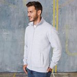 Brushed LSF (Low shrinkage fleece). Silicone wash. Fitted style with ribbed side panels. Contrast neck tape (White contrast for all colours, except for White body where neck tape is Light grey). Contrast striped ribbed inner collar. 2 front pockets. Ribbed cuffs and hem. YKK zip.