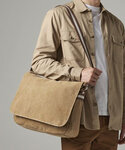 Antique brass effect fittings, adjustable webbing shoulder strap, padded base, zippered main compartment, dual rear pouch pockets and Rip-Strip™ closure.